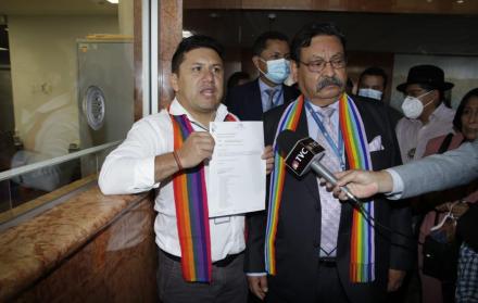 Los asambleístas de Pachakutik Joel Abad y Mario Ruiz presentaron este 11 de noviembre de 2021 un pedido de juicio político en contra de los cinco integrantes del Consejo Nacional Electoral (CNE).