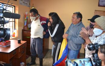 Don Antonio no puede contenerse y hasta lágrimas aparecen en su rostro cuando observa a su hijo en las grandes vueltas. No sabe si sentarse, pararse, quitarse la mascarilla o qué más decir. Para acompañar a su hijo desde lejos instaló una pequeña tableta conectada a internet, pues en el sector no hay señal de teléfono fijo ni celular.