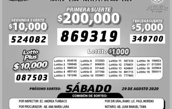 - LOTERÍA NACIONAL: Sorteo Nº 6489, viernes 28 de agosto de 2020