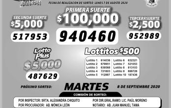 - LOTERÍA NACIONAL: Sorteo N° 6492, viernes 4 de septiembre de 2020