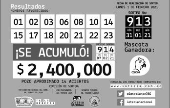 - POZO: Sorteo N° 913, lunes 1 de febrero de 2021.
