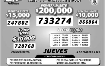 - LOTTO: Sorteo N° 2454, martes 2 de febrero 2021