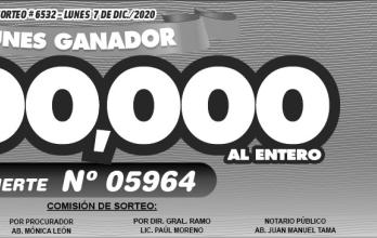 - LOTERÍA: Sorteo N° 6522, lunes 7 de diciembre.