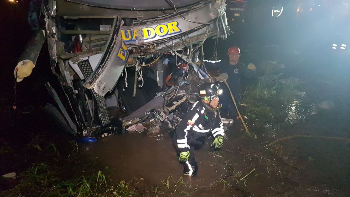 Las víctimas eran pasajeros de dos cooperativas de buses interprovinciales: Loja y Transportes Ecuador. El choque entre ambos fue frontal. La carrocería delantera quedó destruida y sus ocupantes atrapados en medio de los fierros. 18 ambulancias acudieron para el rescate.
