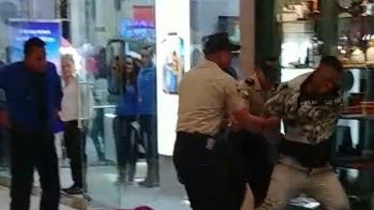 El hecho se suscitó a las 17:00 y se hizo viral en redes sociales por la noche, mediante un vídeo grabado por usuarios en el que se ve que el sujeto es neutralizado por la policía y miembros de seguridad del centro comercial.