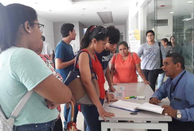 Decenas de bachilleres, graduados en años anteriores, se concentraron este martes 21 de mayo del 2019 en la planta baja del edificio Joaquín Gallegos Lara, ubicado en la avenida Plaza Dañín, en el norte de Guayaquil, donde funciona la Secretaría Nacional de Educación Superior, Ciencia, Tecnología e Innovación (Senescyt), para conocer algunos datos sobre la evaluación.