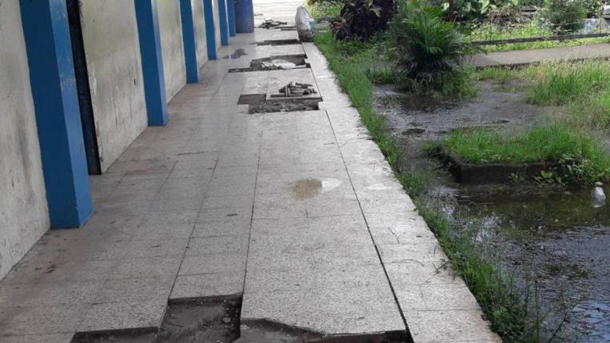 El tumbado tiene grietas por donde filtra el agua lluvia, mientras que el servicio eléctrico está por colapsar y las baterías sanitarias ya lo hicieron.