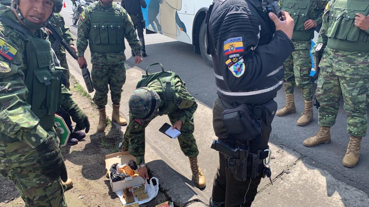 Las hicieron pasar por repuestos de un vehículo para transportarlas en la zona de carga de un autobús interprovincial. Al menos 600 municiones fueron encontradas durante un operativo militar, realizado en una carretera cercana a Quito.