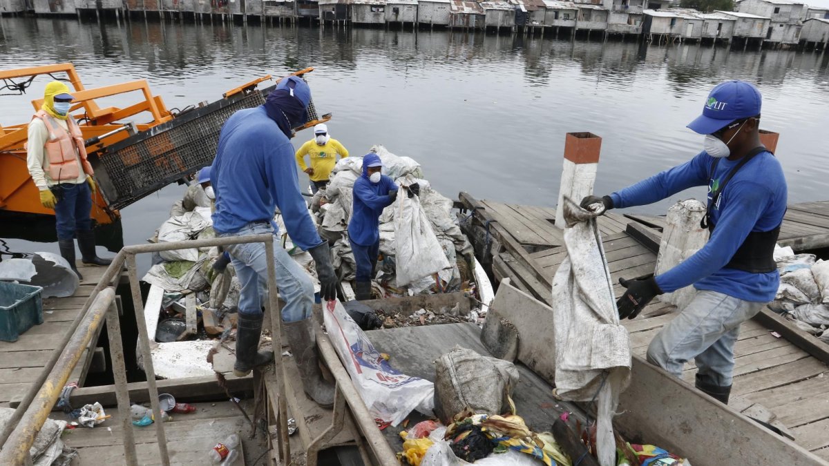 De las 30 toneladas de desechos diarios, 8 son del norte. 70 % son desperdicios del hogar. 130 personas limpian el estero.