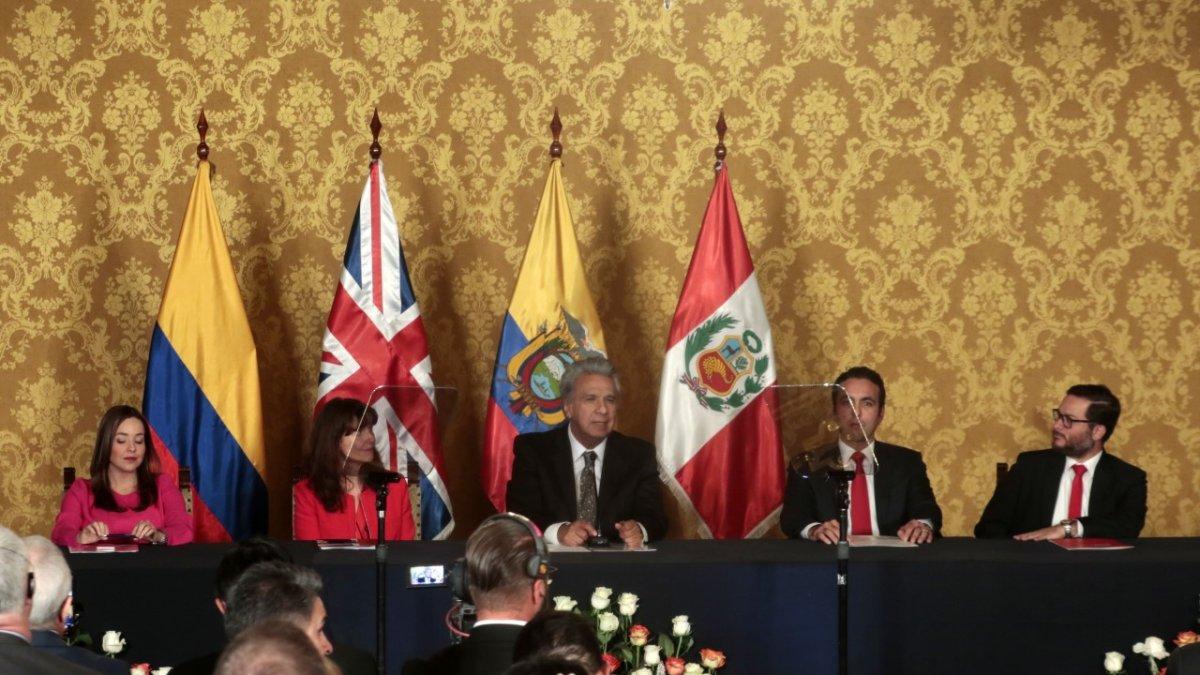 Perú, Ecuador y Colombia firmaron este miércoles 15 de mayo de 2019 un acuerdo comercial con Reino Unido e Irlanda del Norte, con el que buscan ratificar los beneficios obtenidos por los tres países andinos con la Unión Europea tras la eventual salida