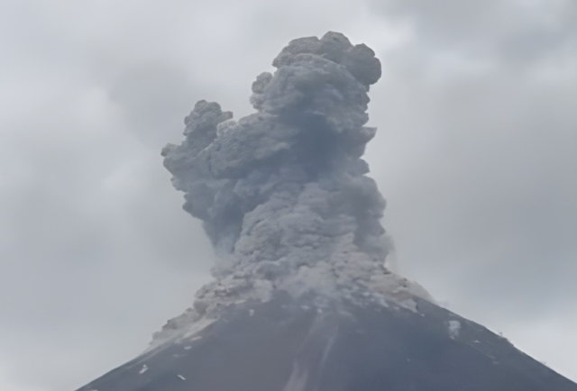 Las columnas de gases y ceniza alcanzan los 700 y 800 metros de altura sobre el nivel del cráter