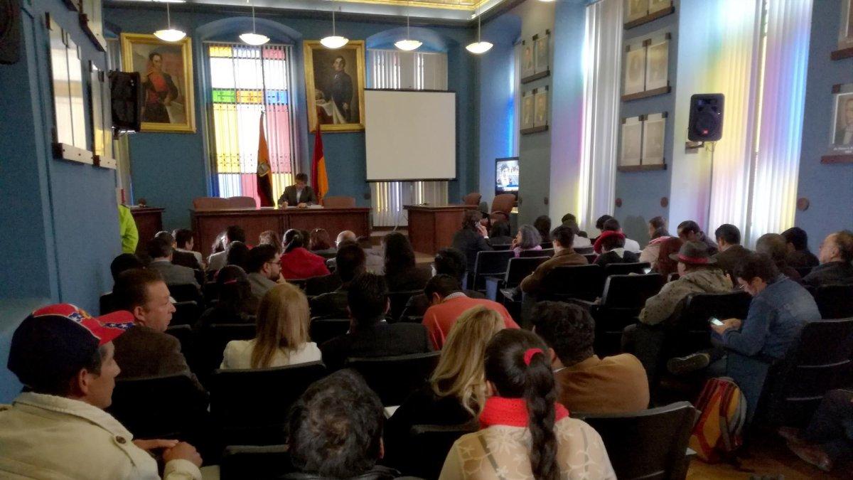 El proceso judicial se cumple en la sala de audiencias Simón Bolívar de la Corte Provincial de Justicia del Azuay, luego de la apelación a la sentencia emitida en junio pasado por el juez Paúl Serrano, que determinó judicialmente “la suspensión de las actividades mineras de Río Blanco”.