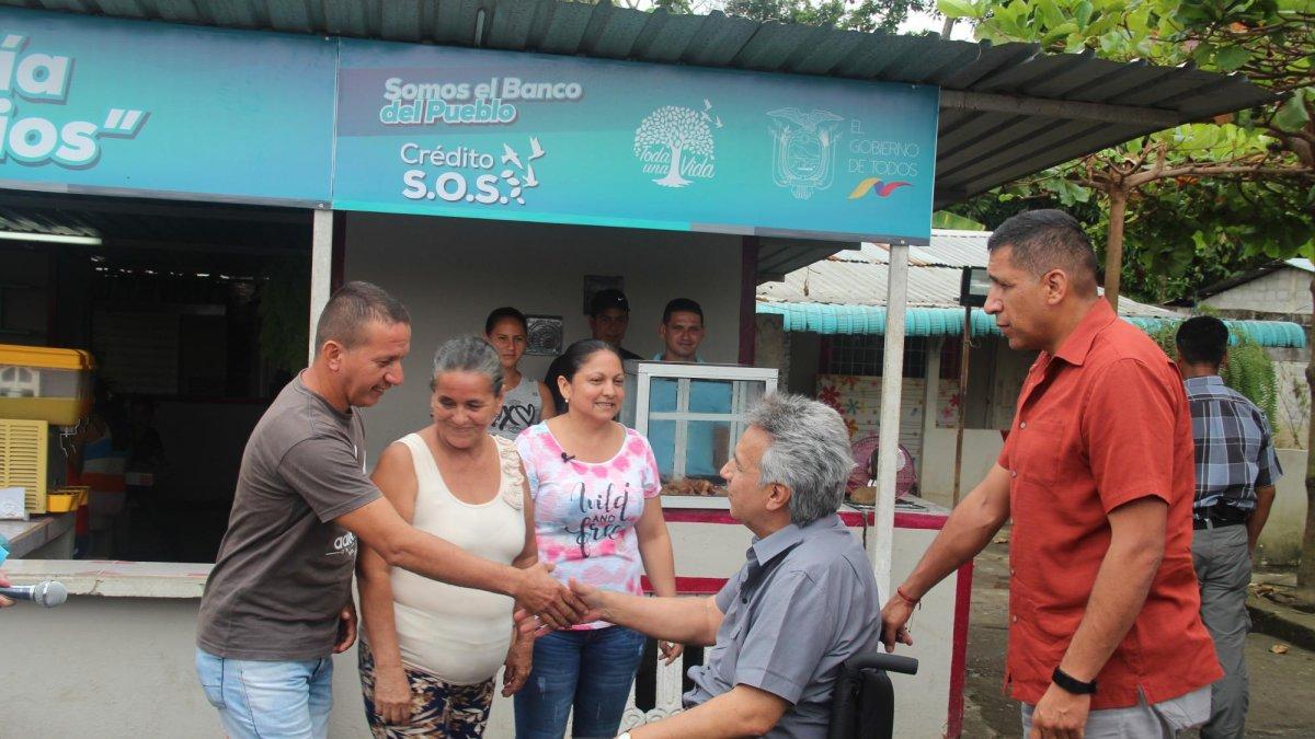 En el recinto San Vicente de la parroquia Balzar de Vinces, el primer mandatario entregó créditos simbólicos a tres habitantes del sector, quienes hace una semana estaban durmiendo en carpas, porque sus casas se inundaron por las lluvias.