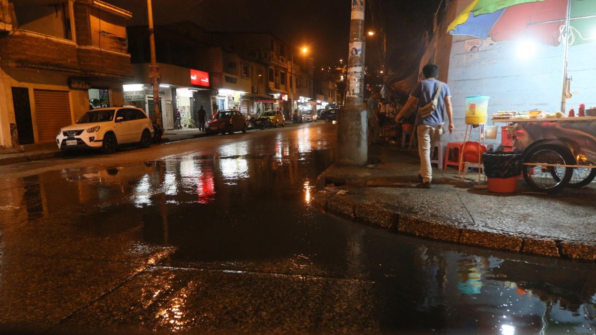 La precipitación inició desde la tarde y se intensificó en la noche en el centro y norte de la ciudad. El Inamhi anuncia tormentas eléctricas para las próximas horas.