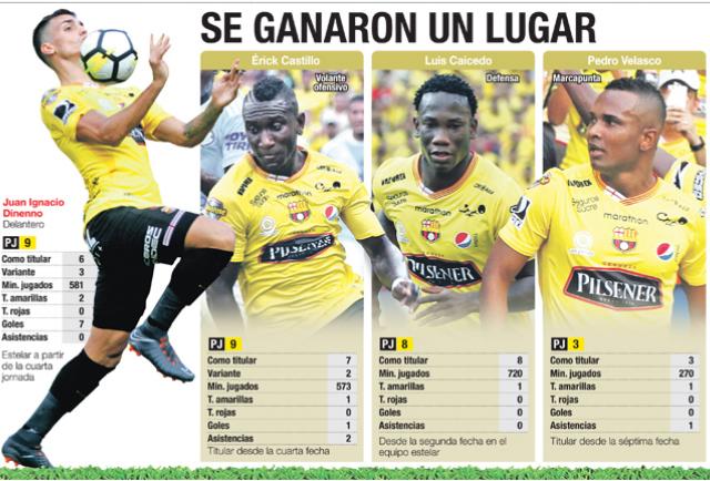 El defensa Luis ‘Cunty’ Caicedo fue el primero que se ganó un lugar y nunca más quedó relegado a la banca, esto porque Almada consideró que estaba en mejor forma que Xavier Arreaga. “Hoy considero que los dos mejores zagueros son Aimar y Cunty. Arreaga es un muy buen jugador y contra El Nacional lo hizo bien, pero los veo mejor al Cunty y Darío”, dijo el técnico. Desde la segunda fecha, Caicedo no se mueve de la titularidad.