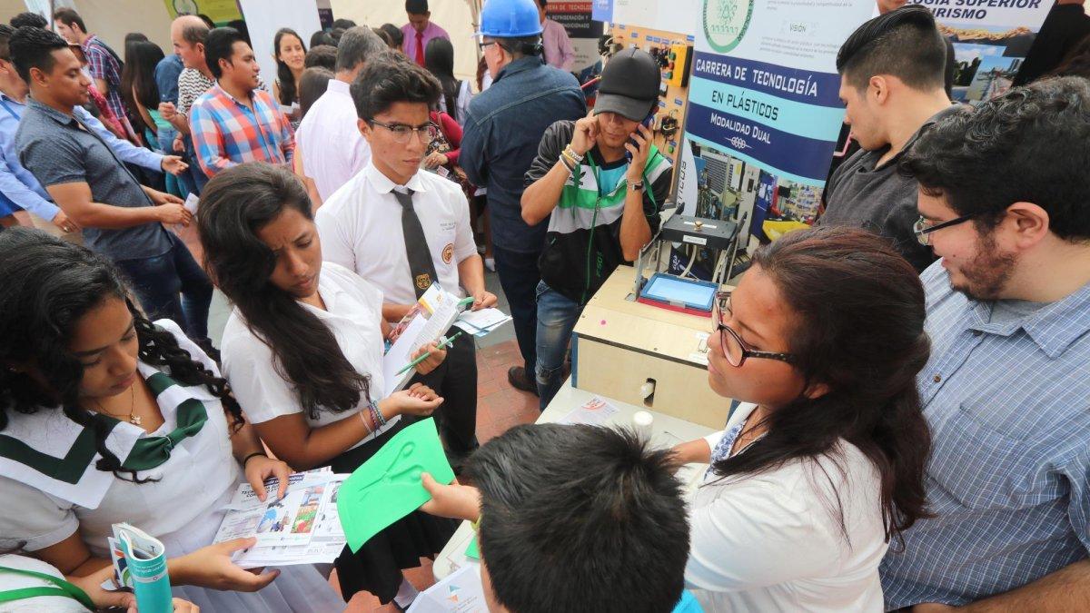 A lo largo de la plataforma del MAAC, ubicada en Loja y Malecón, las instituciones educativas habían instalado una veintena de stands donde recibían a los estudiantes, en su mayoría de segundo y tercero de bachillerato de colegios fiscales y particulares, a quienes les ofrecían folletos que mostraban los planes de estudios y les daban charlas sobre cómo acceder a las carreras y qué perfiles de profesionales se forman en ellas. Además, recomendaban a los jóvenes postular por plazas no tradicionales que se vinculen a las necesidades del país, como por ejemplo a las áreas de Alimentos, Bioeconomía, Agricultura, Metalúrgica, Turismo, Geociencias, Biología, Bioquímica, entre otras, para que a futuro tengan mayores oportunidades de emprendimiento y empleo.