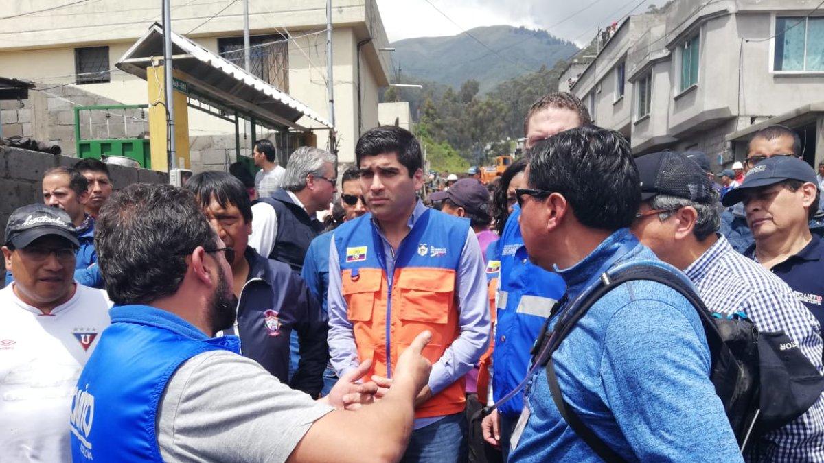 #AfectadosAluviónUIO | Los moradores del Pinar Alto, zona afectada por el temporal invernal, recibieron la atención del vicepresidente @ottosonnenh y autoridades del @MunicipioQuito, donde evaluaron y proporcionaron soluciones para los daños ocasionados. pic.twitter.com/o1eFpIPOxv
