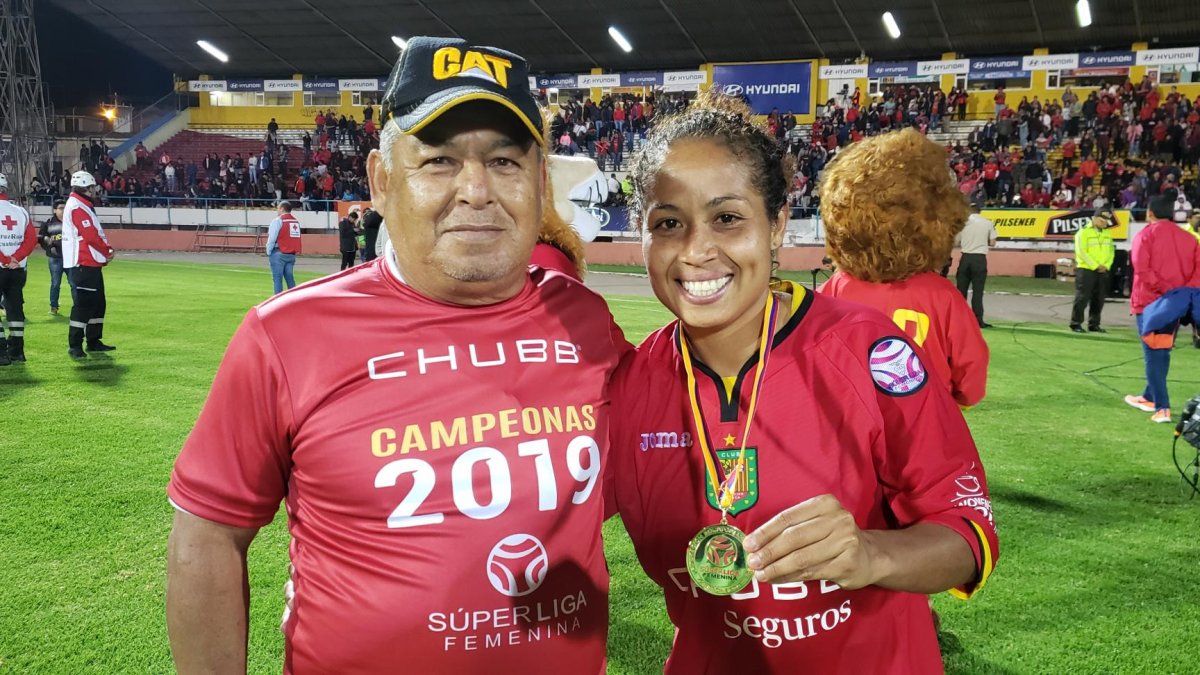 “Todo el mundo me pregunta por ella, por qué no se cansa. Es su forma de jugar, no ir a todas las pelotas. Por algo se ha ganado un nombre en el fútbol nacional, es muy técnica”, comenta su Villón, con quien ha sido campeona en Rocafuerte y D. Cuenca.