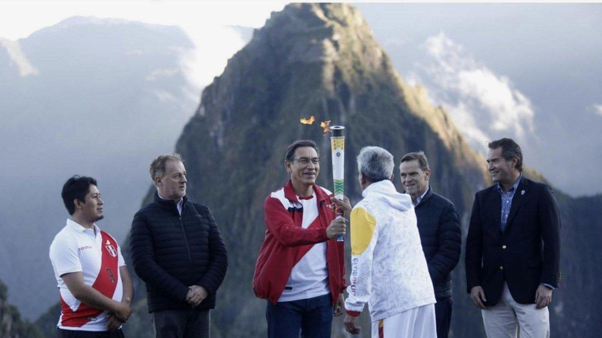 El fuego, símbolo de la hermandad olímpica, fue recibida en la ciudadela de Machu Picchu por el presidente peruano Martín Vizcarra, en una ceremonia en la que estuvo acompañado por el alcalde de Lima, Jorge Muñoz.