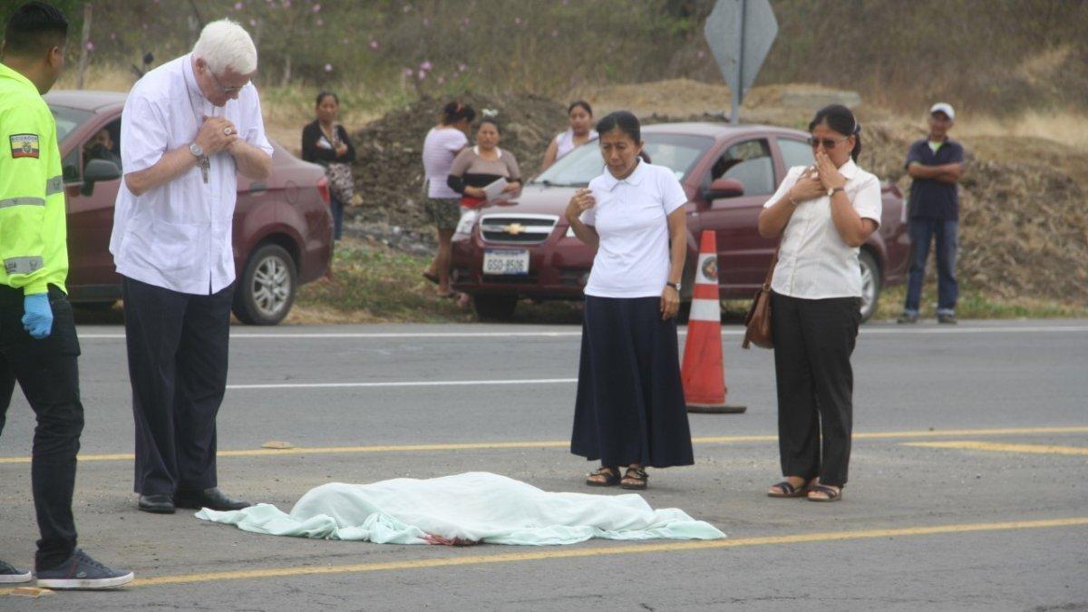 Una escena que dejó impávidos a los presentes, fue la presencia de monseñor Andrés Carrascosa, nuncio apostólico que representa al papa Francisco en el Ecuador. El religioso retornaba desde la Península hacia Guayaquil. Al ver el cuerpo en la vía, hizo un alto. Se bajó del vehículo y acudió hasta el cuerpo de Jahaira para orar y darle la bendición.