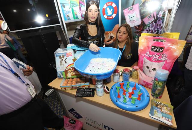 Es más, el sueño de cualquier perro o gato podría cumplirse ahí. Pues, se exhibió desde comidas sin gluten hasta las de sabor a salmón y a carne de venado y a bisontes asados, de la marca Taste of the Wild. La empresa ServiMarket presentó su arena alerta enfermedades felinas. “Está hecho de cristales que cambian de color si es que su gato presenta un problema de salud”, dijo Janeth Lamota.