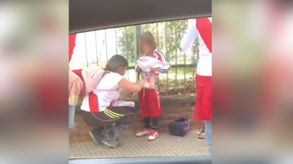En un video se ve a la mujer llenando el torso de un menor con pirotecnia para supuestamente ingresar al estadio de River Plate.