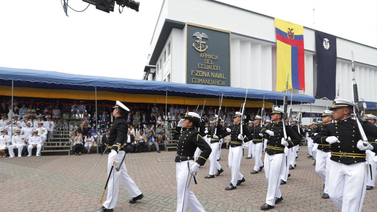 Solo la mitad de los marinos previstos a desfilar, marcharon. La institución solicitó equipos al presidente Lenín Moreno.