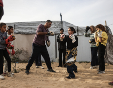 Mundo Boxeo y pintura, terapias para niñas de Gaza Niñas y adolescentes de la Franja de Gaza crean arte y realizan actividades deportivas en medio de la destrucción