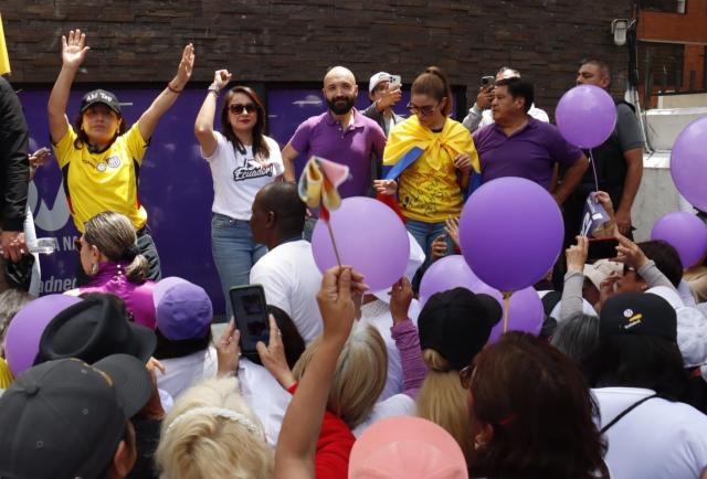 La intersección de las avenidas Naciones Unidas y Amazonas, en el norte de Quito, fue el punto de concentración de los asambleístas de Acción Democrática Nacional (ADN) y los simpatizantes del movimiento de Gobierno para realizar este sábado 1 de noviembre de 2025 una caminata por el inicio de la campaña a favor del "sí" en la consulta popular.