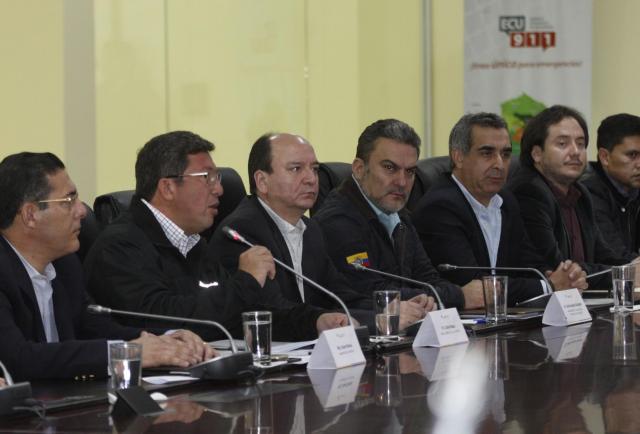 El anuncio fue hecho en una rueda de prensa, en la que estuvieron, entre otros, los ministros de Defensa, Patricio Zambrano; y del Interior, César Navas; el fiscal general Carlos Baca Mancheno; el presidente de la Asamblea Nacional, José Serrano; y el presidente del Consejo de la Judicatura, Gustavo Jalhk.