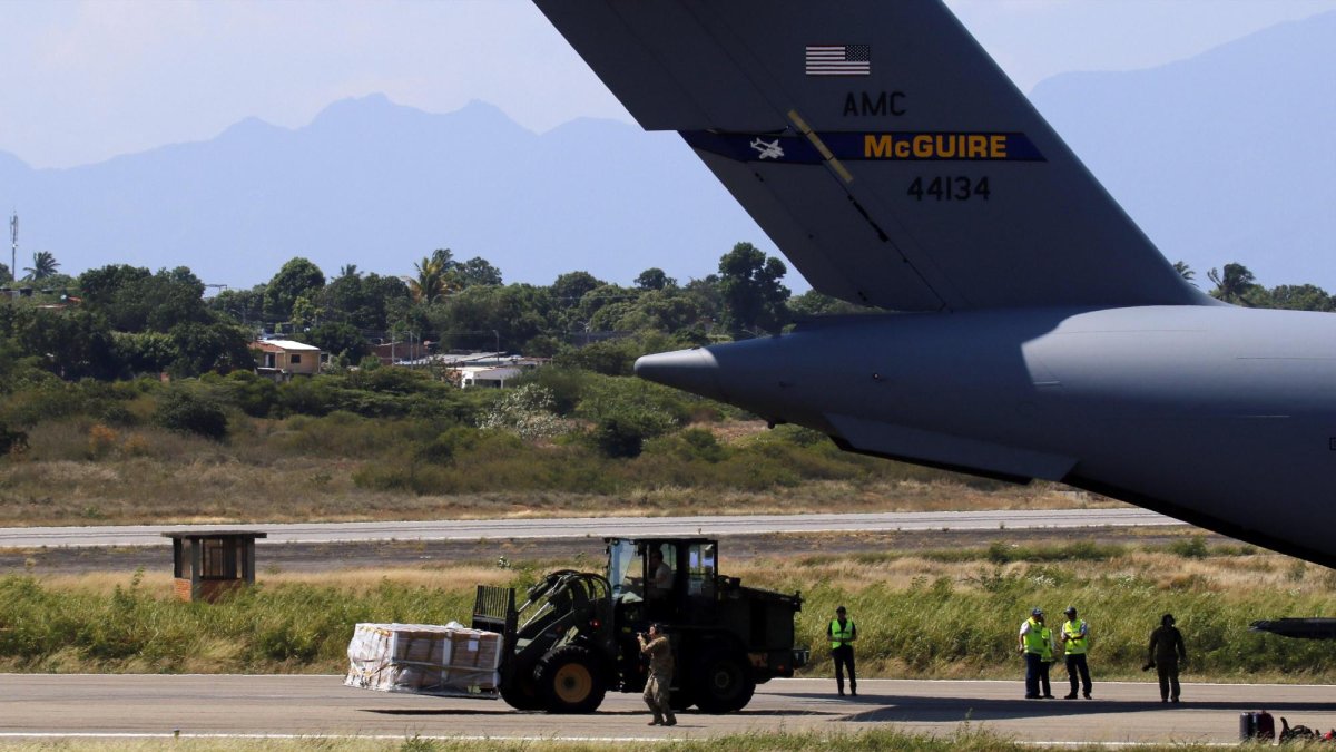 Aviones militares de EE.UU. dejan en Cucuta toneladas de ayuda para Venezuela