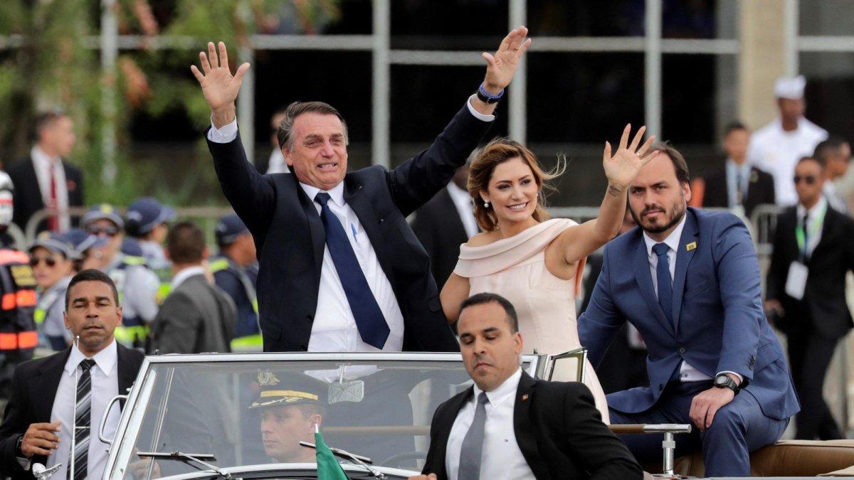 El dirigente ultraderechista llegó al Congreso en un Rolls Royce descapotable, acompañado por su esposa Michelle y escoltado por una guardia montada, bajo la aclamación de centenares de miles de personas a lo largo de la Explanada de los Ministerios de Brasilia.