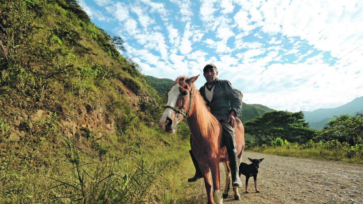 Lo hace sobre el lomo de su yegua Gitana y en compañía de su mejor amigo, su perro Avispa. El hombre madruga para cumplir con sus labores agrícolas en la propiedad de unas dos hectáreas de extensión en donde siembra camote, zanahoria y otros productos.