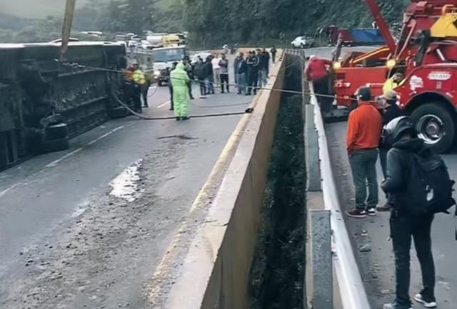 Bus interprovincial se volcó en vía Alóag - Santo Domingo y dejó 10 heridos