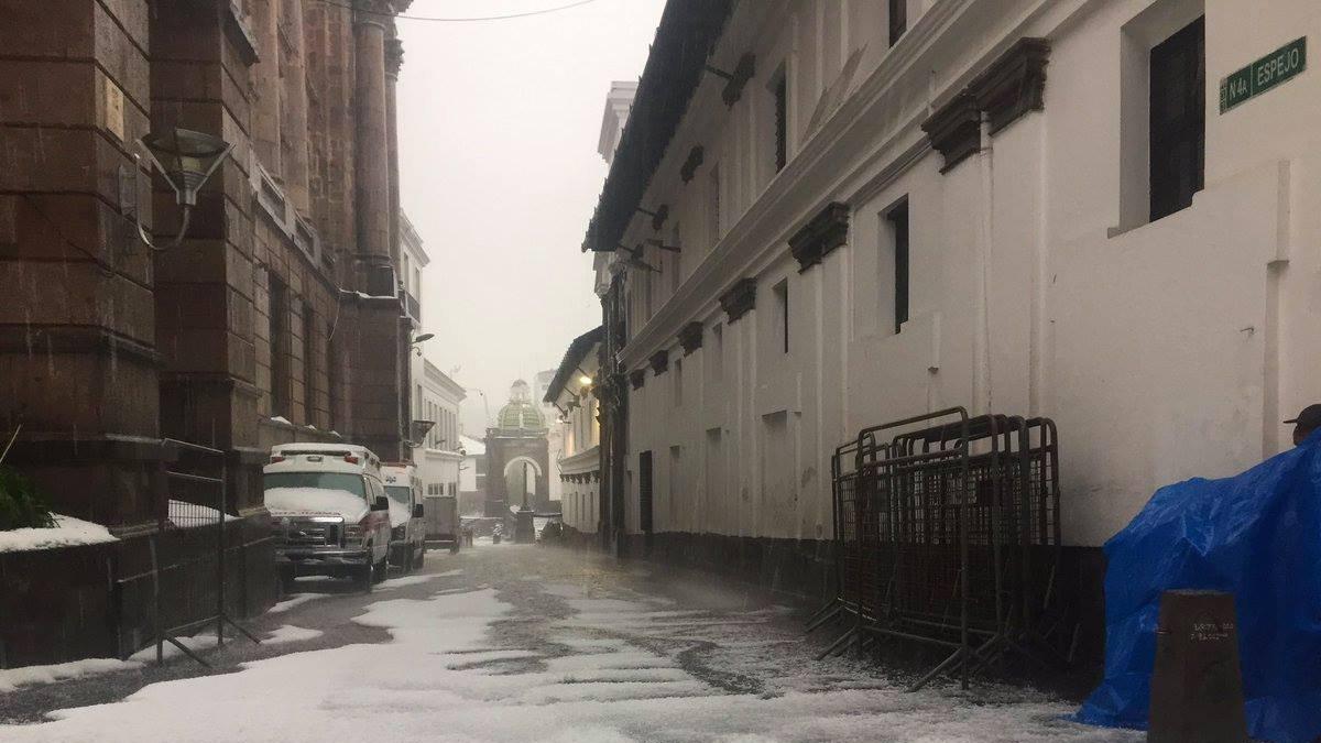 Cae fuerte granizada en el Centro Historico de Quito
