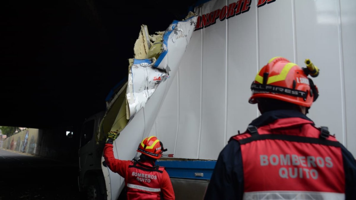 Aproximadamente a las cinco de la madrugada de este 23 de diciembre, un camión de carga intentó pasar por debajo del paso deprimido de San Blas, en pleno centro de Quito.