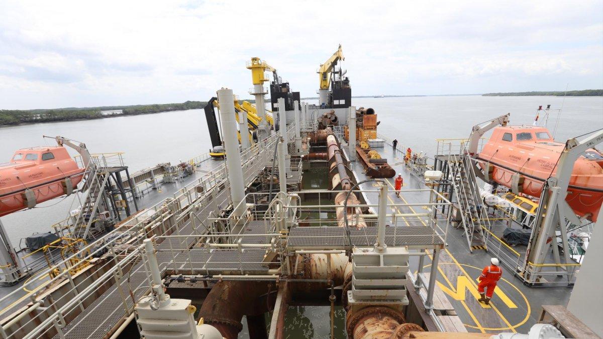 La empresa ha colocado hasta ahora seis equipos para dragar y vendrá uno adicional la semana próxima. “Este es un gran proceso para el transporte marítimo”, anota Neckebroeck.