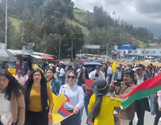 Economía Decenas de personas marchan contra aranceles en frontera con Colombia Transportistas de Ecuador y Colombia se concentran en Rumichaca. Caravana de tráileres exige eliminación de medidas del 30%