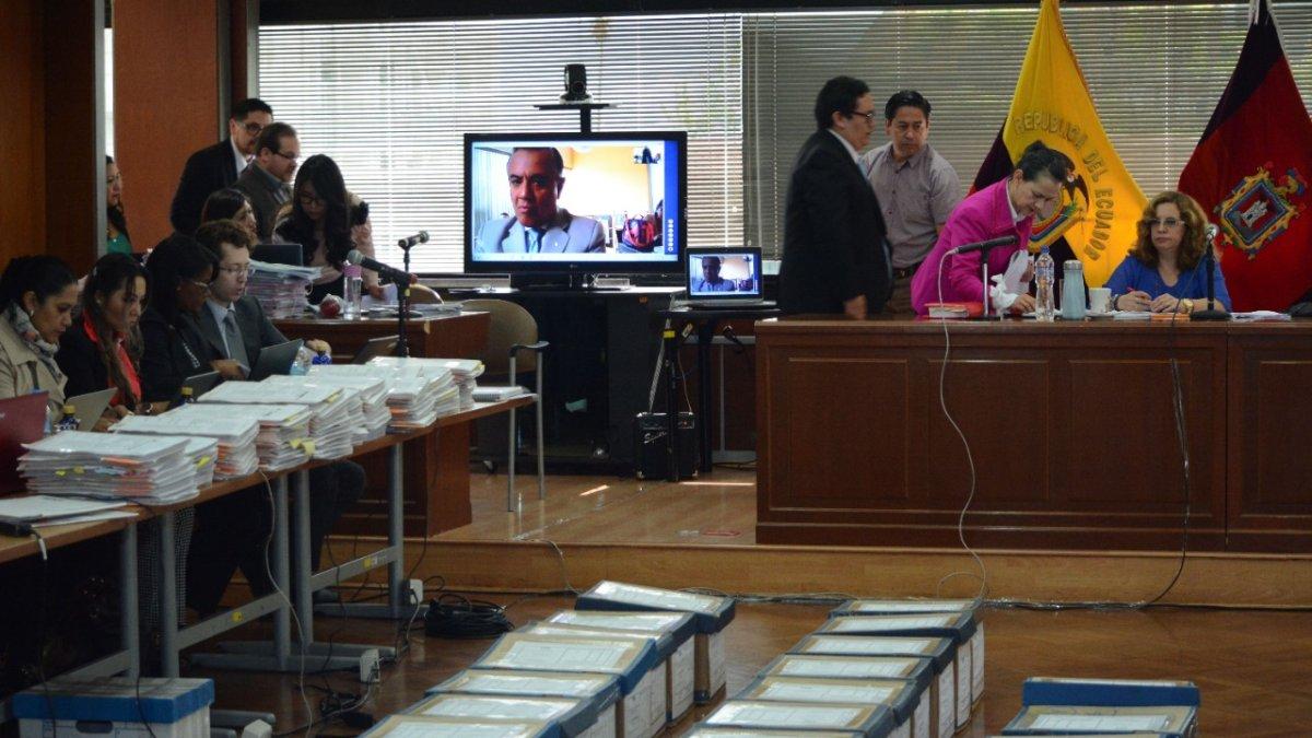 Desde Guayaquil en donde cumple su arresto domiciliario Alexis Mera, exsecretario Jurídico de la Presidencia, siguió la diligencia mediante videoconferencia. La semana pasada las dos principales implicadas en el caso: Pamela Martínez, exasesora de Rafael Correa y su exasistente Laura Terán recuperaron su libertad con medidas sustitutivas. Ayer fue la primera presentación de ambas en la Corte. Ellas además no pueden salir del país y tienen que utilizar dispositivo electrónico.