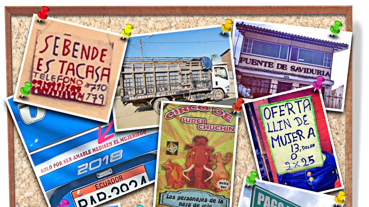 Hay verdaderas joyas: “’’Sebende’ es ‘tacasa’”, se lee en un letrero que inmortaliza patulecas letras rojas. “Solo por ser amable medisen el mujeriego”, reza la parte trasera de un bus, justo arriba de la placa. “Los personajes de la ‘Hera del ielo”, propone un circo en un cartel, en otra foto.