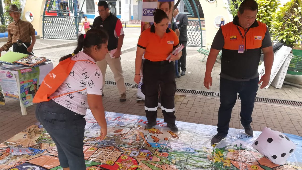 La feria comunitaria, que fue inaugurada por Jorge Sáenz, director Zonal 4 del SNGRE, se desarrolló en el Parque Central de la ciudad y contó con la participación de Cruz Roja Ecuatoriana, Sistema Integrado ECU911 de Portoviejo, Ministerio Inclusión Económica y Social MIES, Cuerpo de Bomberos, World Vision, y Plan Internacional.