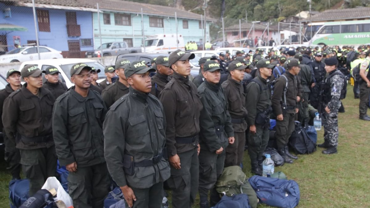 Antes de las 07:00 de este sábado 3 de agosto, camiones del Ejército transportaron desde la parroquia La Merced de Buenos Aires de Urcuquí, en Imbabura, a cientos de policías hacia las minas ubicadas en las montañas del sector.