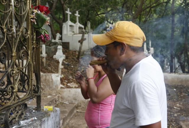 “Hay gente que toma baños delante de esta bóveda. Se la conoce como curandera y quien fue la viuda del curandero que está en otro lado”, dice Héctor Piza, mientras fuma unos cigarros, que antes ha lanzado sobre el piso, como parte de un ritual de protección y lectura de la suerte, unas de las actividades comunes en varias de estas sepulturas.