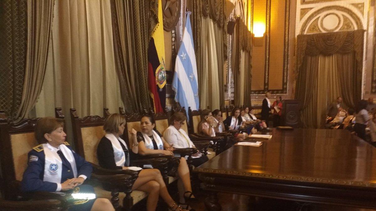 Tanya Varela, comandante zonal de la Policía; Martha Herrena, secretaria del Consejo Municipal; Patricia Ochoa, viuda de Gabela; Ketty Romo-Leroux, primera ministra jueza de la Corte Superior de Justicia de Guayaquil, Pamela Vera; periodista de este Diario, entre otras profesionales, recibieron por parte de Grecia Cando Gossdenovich, concejala y organizadora del evento, una banda y diploma en que las reconoce como mujeres destacadas de Guayaquil