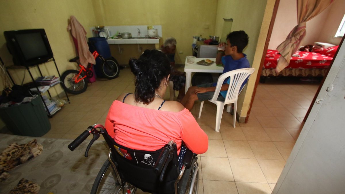 Alexa Arroyo tenía 14 años cuando una bala perdida se alojó en su columna y la dejó parapléjica. Ahora tiene 35 y no solo debe ocuparse de su propia discapacidad, sino de la esquizofrenia que padece su hijo de 16 años, el déficit intelectual del de 18, y los problemas psicológicos de su abuela.