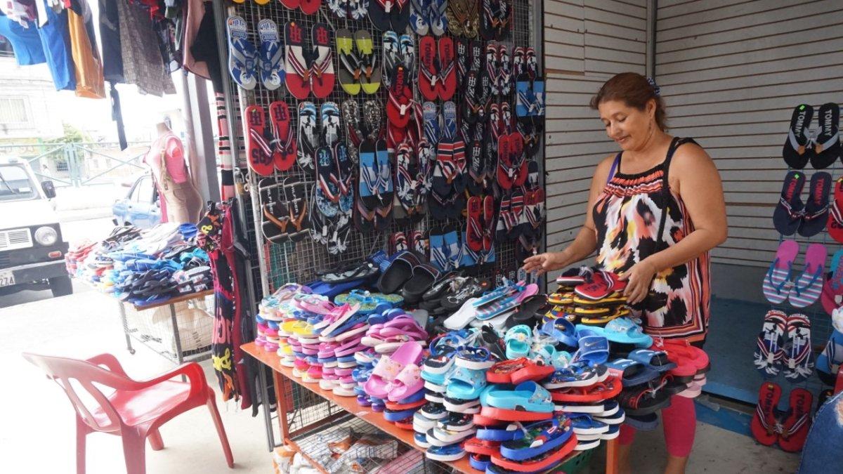 Mirella Parrales abrió ayer su local, sólo con zapatillas. Un préstamo que le hizo su hija mayor, le sirvió para invertir en la mercadería y abrir su kiosko, dentro del mercado de la Isla Trinitaria. Un distribuidor de zapatillas también le dio la mano, dejándole fiado. Pero le falta conseguir la ropa. “Los delincuentes se me llevaron todo, sólo me dejaron un maniquí”, añadió la dama de 52 años, quien debe ‘rascarse’ para reunir dinero y pagarle a chulqueros.