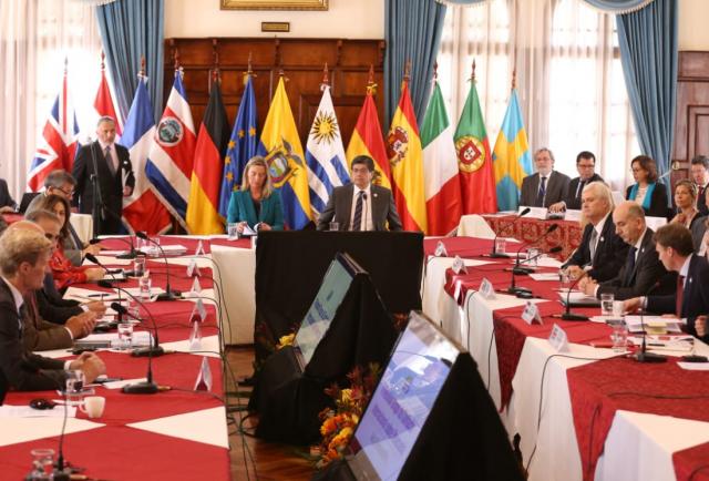 El Palacio de Najas, sede de la Cancillería ecuatoriana, alberga el encuentro que se espera que concluya con una declaración y en el que participan un total de ocho ministros de Exteriores y es copresidido por la jefa de la diplomacia europea, Federica Mogherini, y el canciller ecuatoriano, José Valencia.