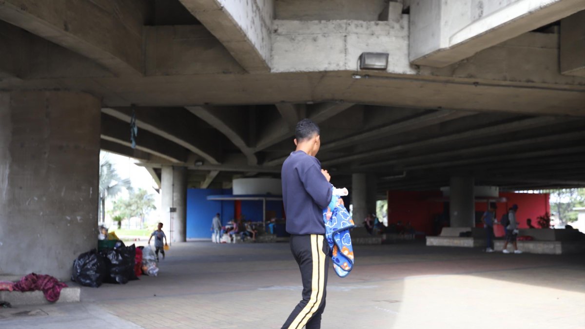 De un espacio deportivo y recreativo a un refugio improvisado de inmigrantes. En eso se ha transformado la parte baja del intercambiador de tránsito que conecta a la Avenida de las Américas con la autopista Narcisa de Jesús Martillo Morán.