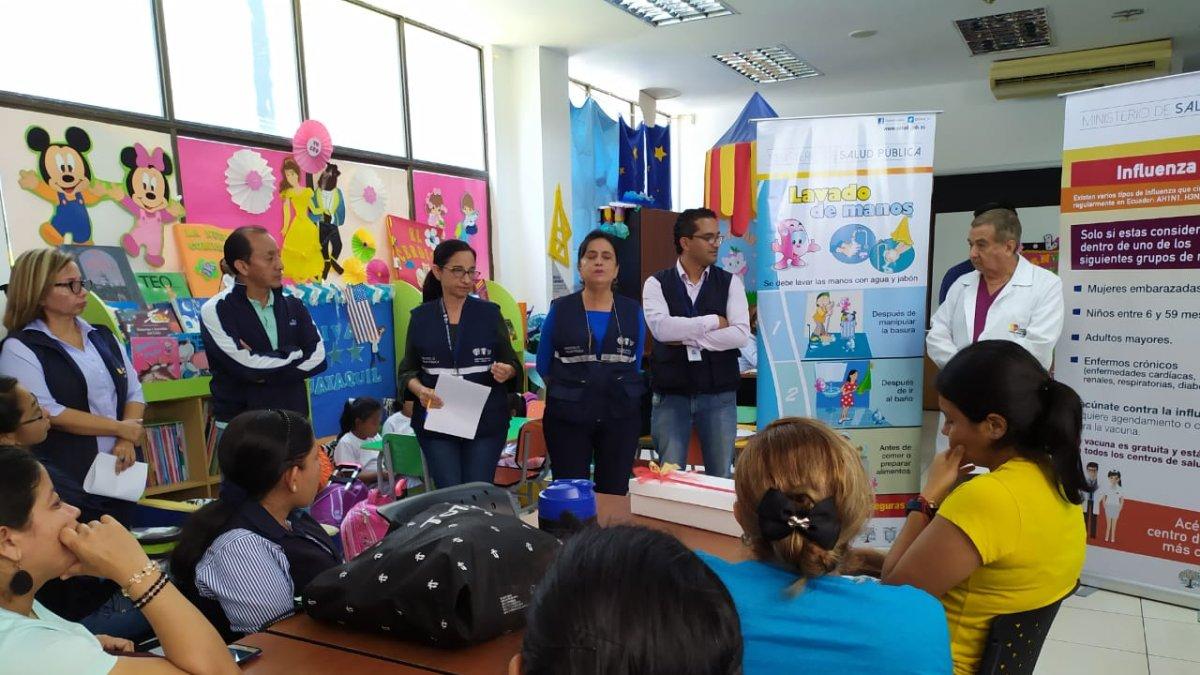 Docentes, técnicos de riesgo y directivos de 1.536 instituciones educativas fiscales y particulares de la Zona 8 (Guayaquil, Durán y Samborondón) reciben capacitación sobre el cuidado y prevención del virus de la influenza, de parte de médicos del Ministerio de Salud en coordinación con la Subsecretaria de Educación de Guayaquil.