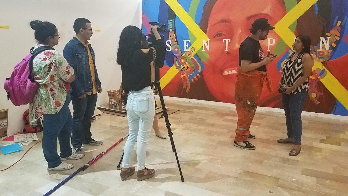 Estaban haciendo una tarea estudiantil, pero no en el aula de clases ni en sus casas. Un grupo de alumnos de la Universidad Católica de Santiago de Guayaquil (UCSG) armaba sus cámaras y preguntas para entrevistar a uno de los artistas que participan en una exposición de arte visual urbano, en uno de los salones del Museo Antropológico y de Arte Contemporáneo (MAAC), en el Malecón 2000.